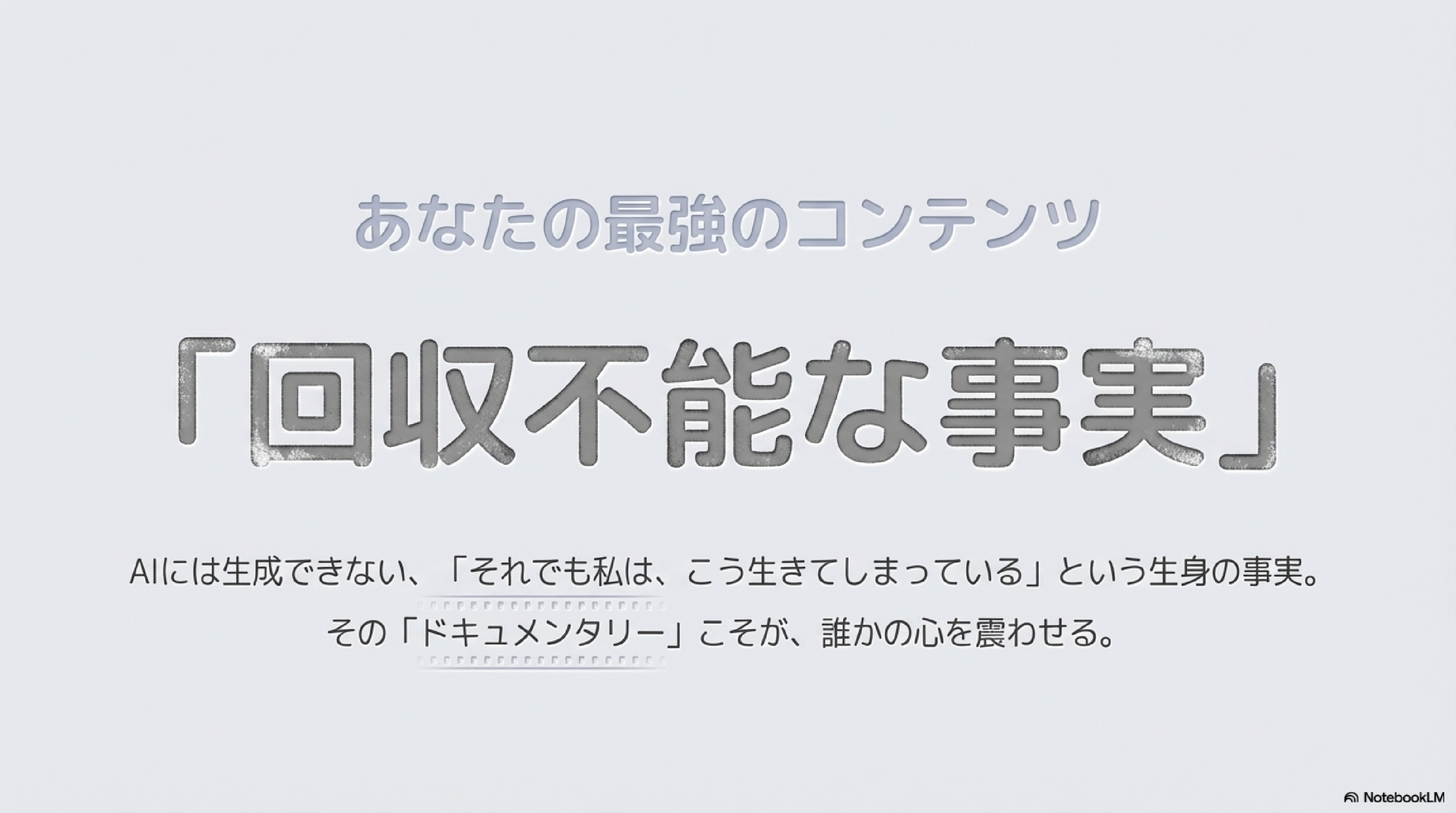 それらは、AIには生成できない、あなただけの資源なのです。